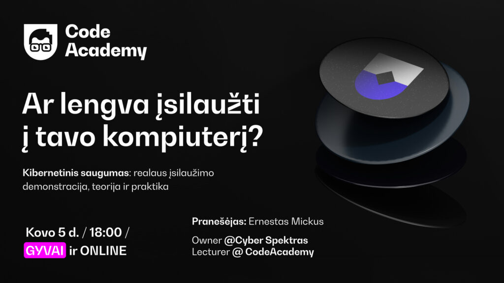 Ar tikrai žinai, kas gali nutikti tavo kompiuteriui per kelias minutes?🤔 Kovo 5 d. kviečiame į kibernetinio saugumo renginį, kuriame ne tik kalbėsime apie grėsmes – jas parodysime gyvai.