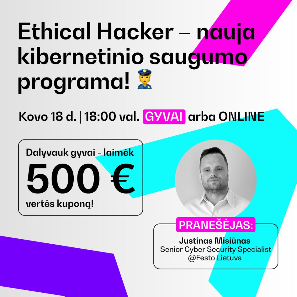 Nori suprasti, kaip veikia įsilaužimų prevencija ir testuoti sistemų saugumą? Ateik į renginį ir sužinok daugiau apie naują Ethical Hacker programą!